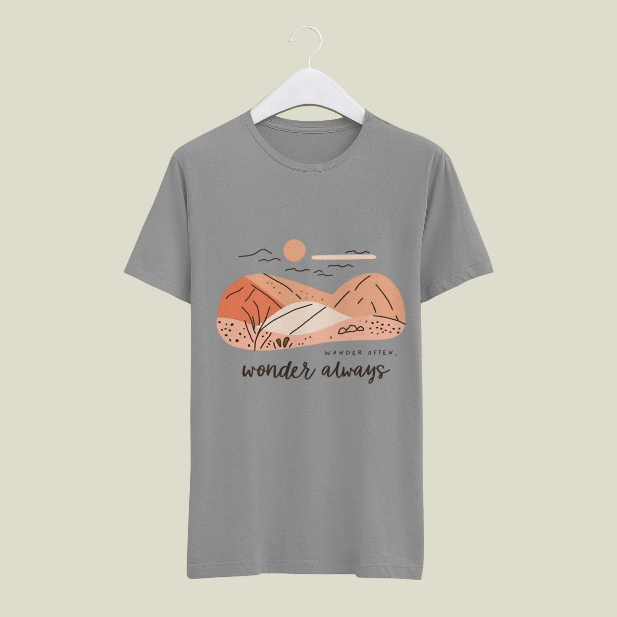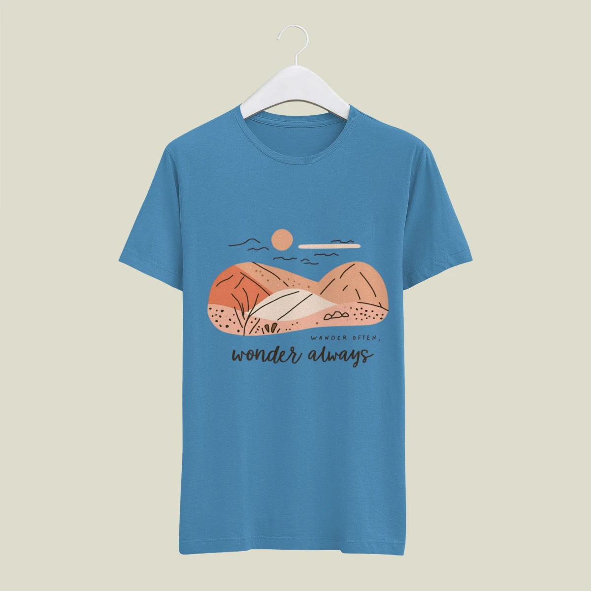 Get creative, spread positivity, and remind your audience to wander often and wonder always. Add this free t-shirt design to your creative library today and start your next adventure in design!