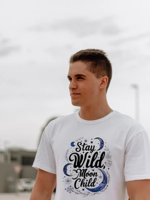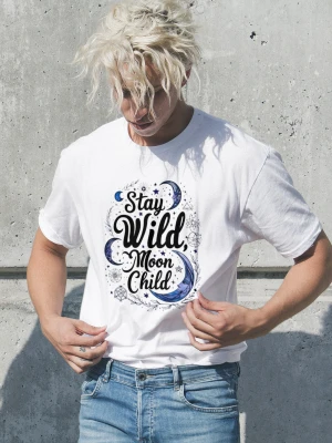 The “Stay Wild Moon Child” phrase embodies self-expression, intuition, and the desire to live freely under the night sky. It appeals to spiritual individuals, dreamers, and free spirits who believe in the magic of the universe. Its celestial elements — stars, moon phases, and cosmic symbols — make it an ideal addition to boho fashion lines, astrology-inspired art, or metaphysical stores.